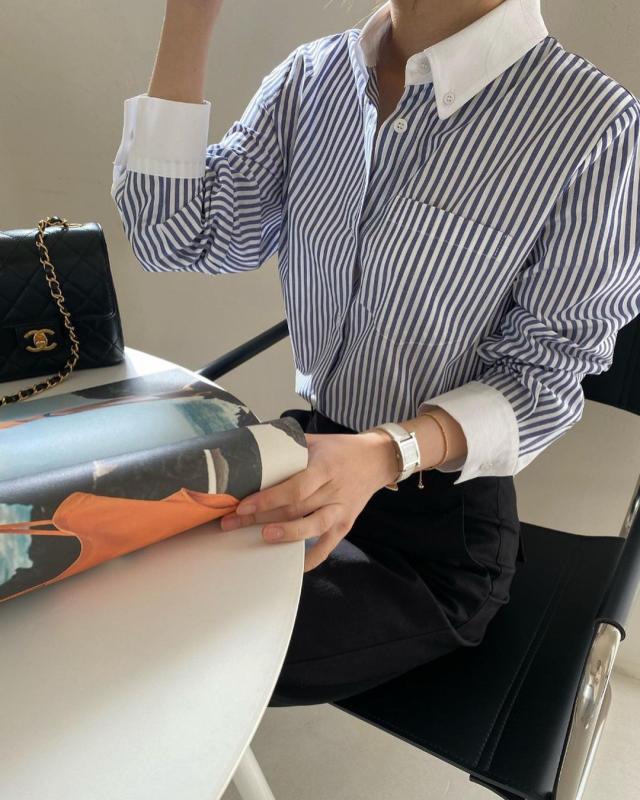 💙💙 산뜻한 스트라이프 배색카라남방이에요~ 봄이면 남방과 블라우스쥬~~^^🙂🙂