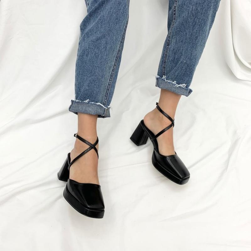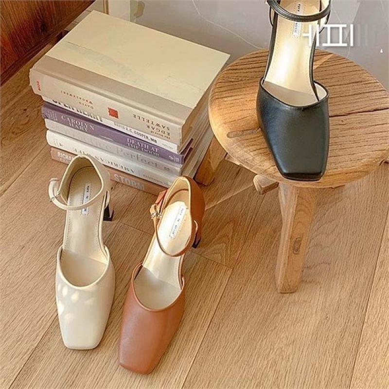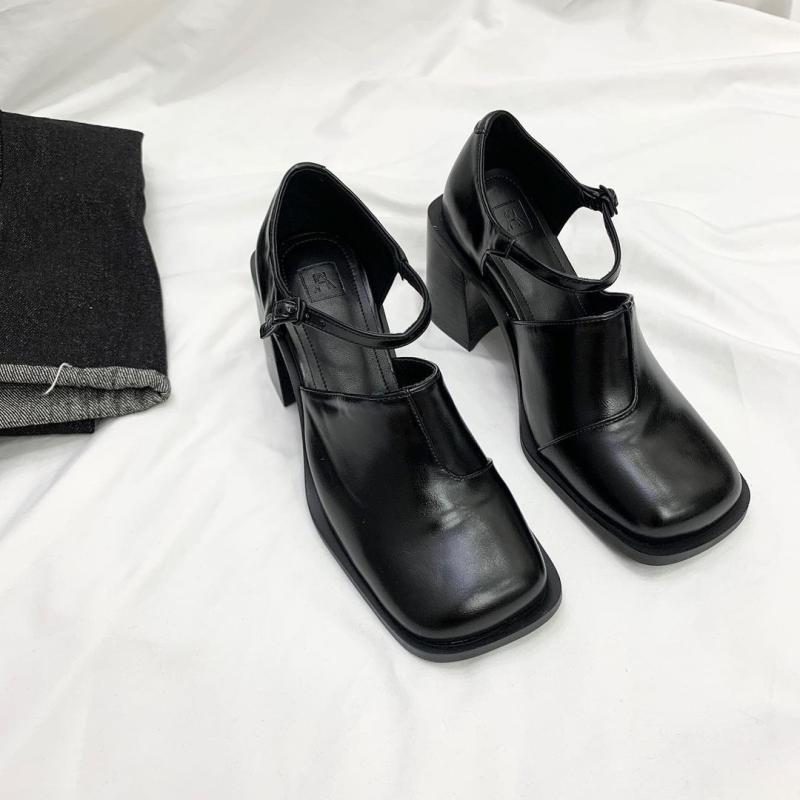🔎 유니크 아웃솔 스퀘어 발목 스트랩 메리제인 통굽 펌프스힐 7cm