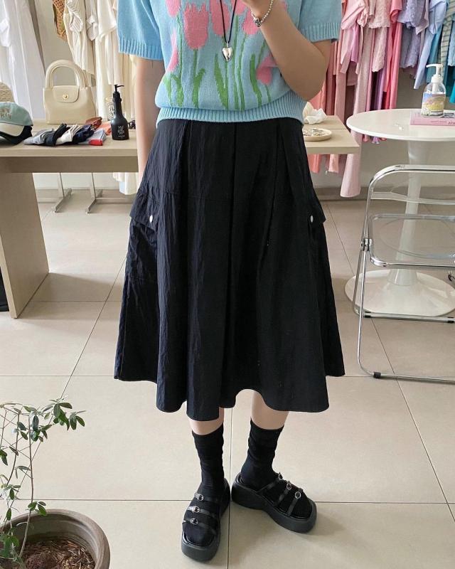 나일론 소재의 카고 미디 스커트🖤🖤 심플한데 포켓 디테일로 귀여움도 살짝..🫰🏻 스몰 미듐 나와요 !!