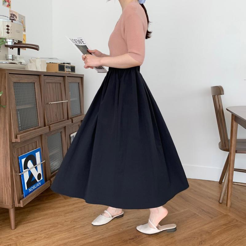니트와 면 스커트 조합도 괜찮아요