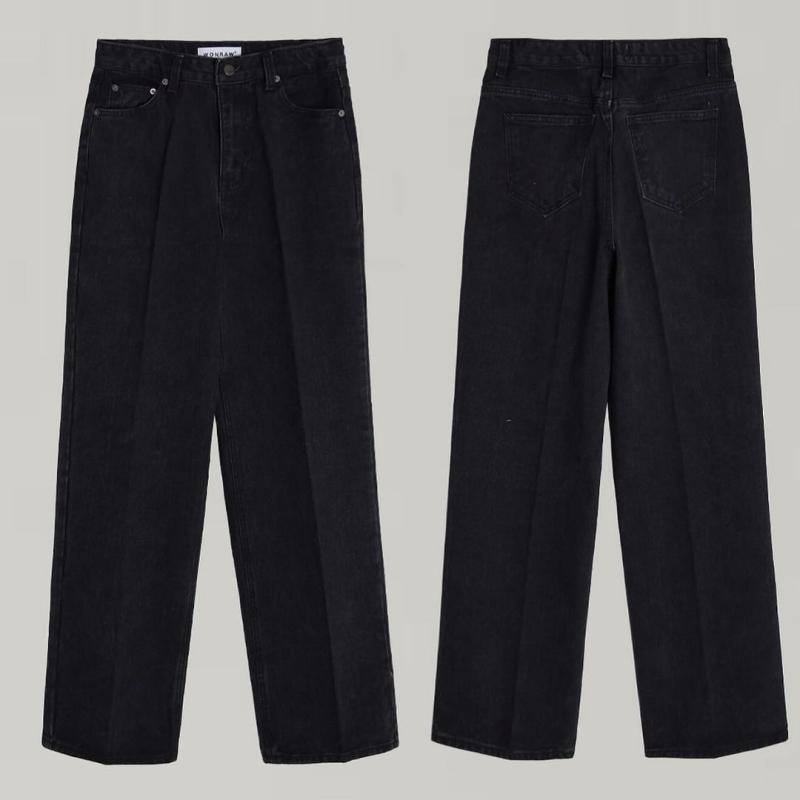 🫧 데님와이드 사이드지퍼 스티치 블랙진