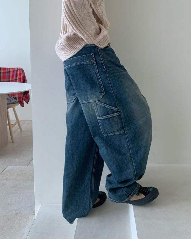 🫧 데님 워싱 스트릿 와이드 청바지