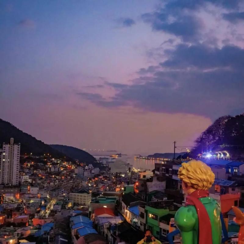 오늘 부산 마지막 여행지는 감천문화마을입니다. 미니버스를 타고 산에 올라가야 하더라구요~. 동화나라에 온 것 같습니다. 꼭 해가 있을 때 오세요. 🥰 작은 집이 너무 아름다워요. 유명한 어린왕자 피규어를 봤어요. 마을에서 가장 높은 곳에서 바라보니 일몰이 너무 아름다워요. 떠나기 전에 이곳의 유명한 생선을 먹었어요. 아주 맛있었어요, 부산의 매력을 영원히 기억하고 집으로 출발할게요~