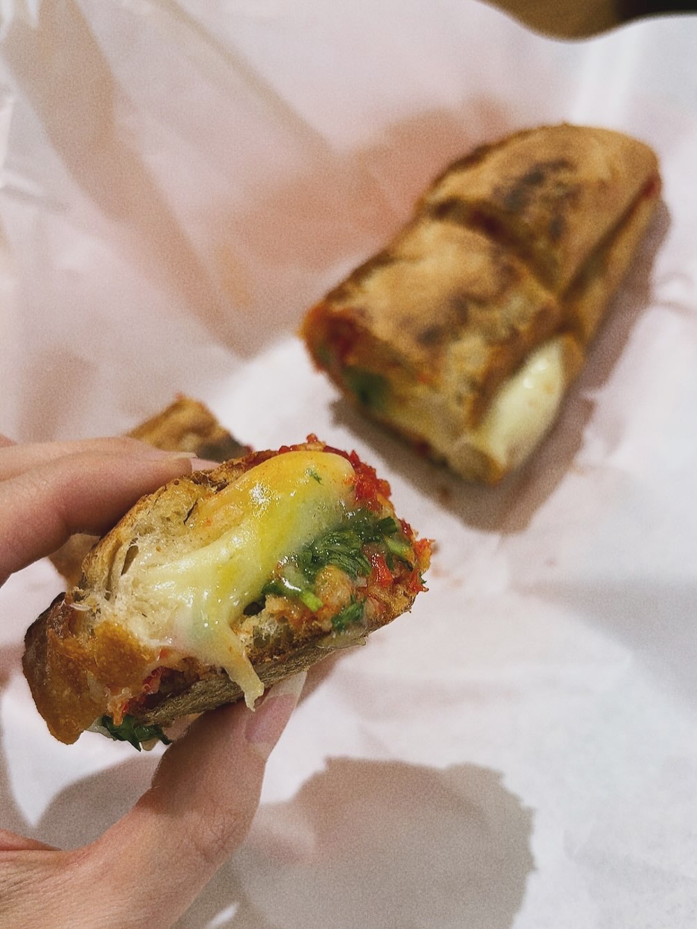 먼저, 그릴 샌드위치! 겉은 바삭, 속은 촉촉한 그 맛있는 바게트는 말해 뭐해요. 🥖