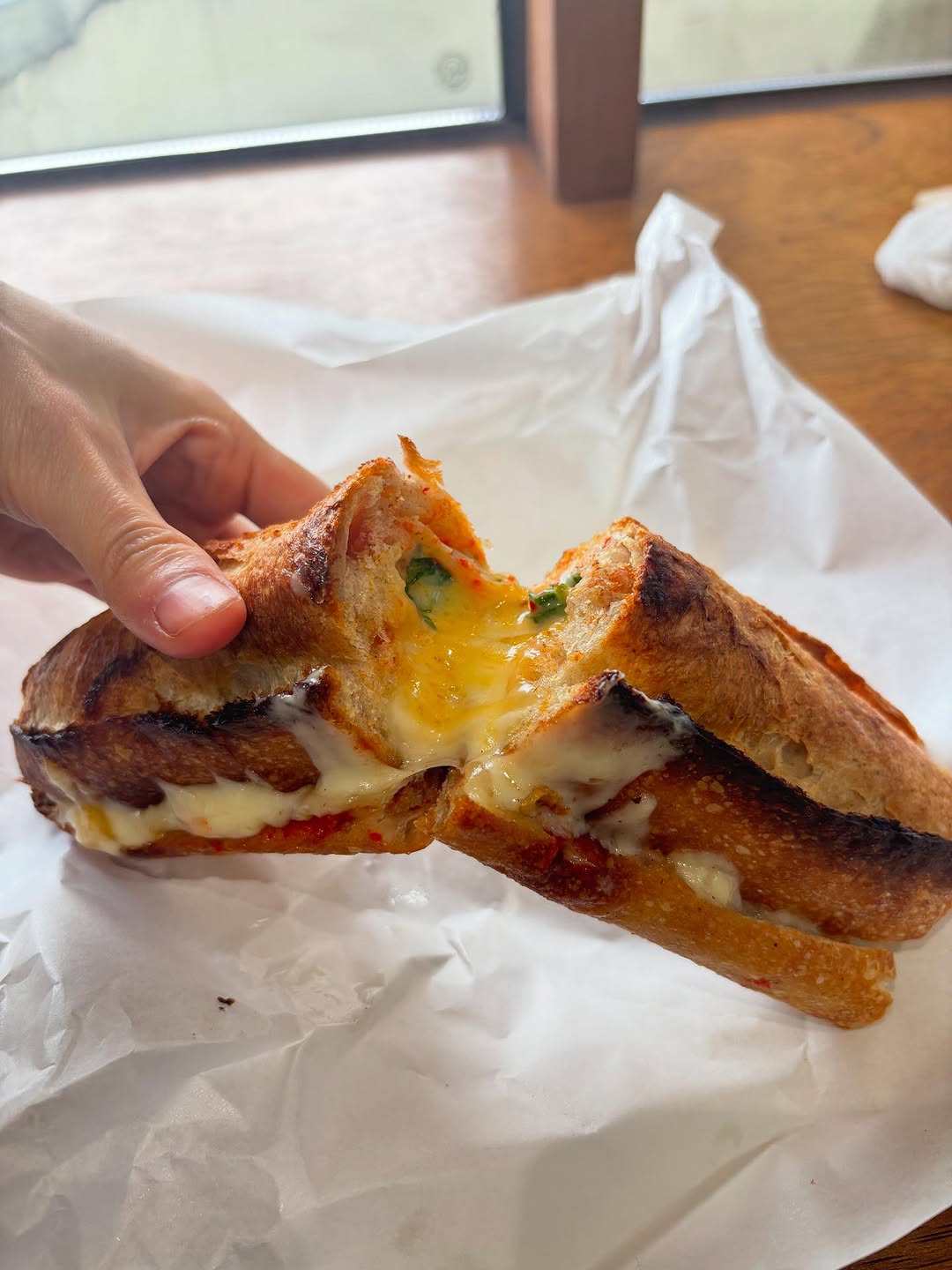 다음은 꽁떼치즈 샌드위치! 이건 정말 치즈 러버들의 천국일 거예요. 🧀