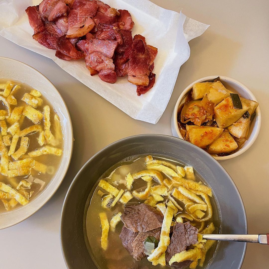 육수팩을 냉장고에서 해동 후 5분 정도 끓인 후에 고기 넣고 파 쏭쏭 썰어넣어서 먹으면 뜨끈하니 몸보신으로 최고더라구요💓