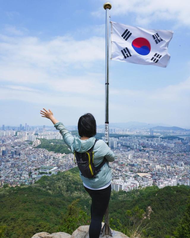 태극기와 서울 경치를 배경삼아 추억을 남겼어요! (중간에 산스장에 들려 데드리프트 하기🙂)